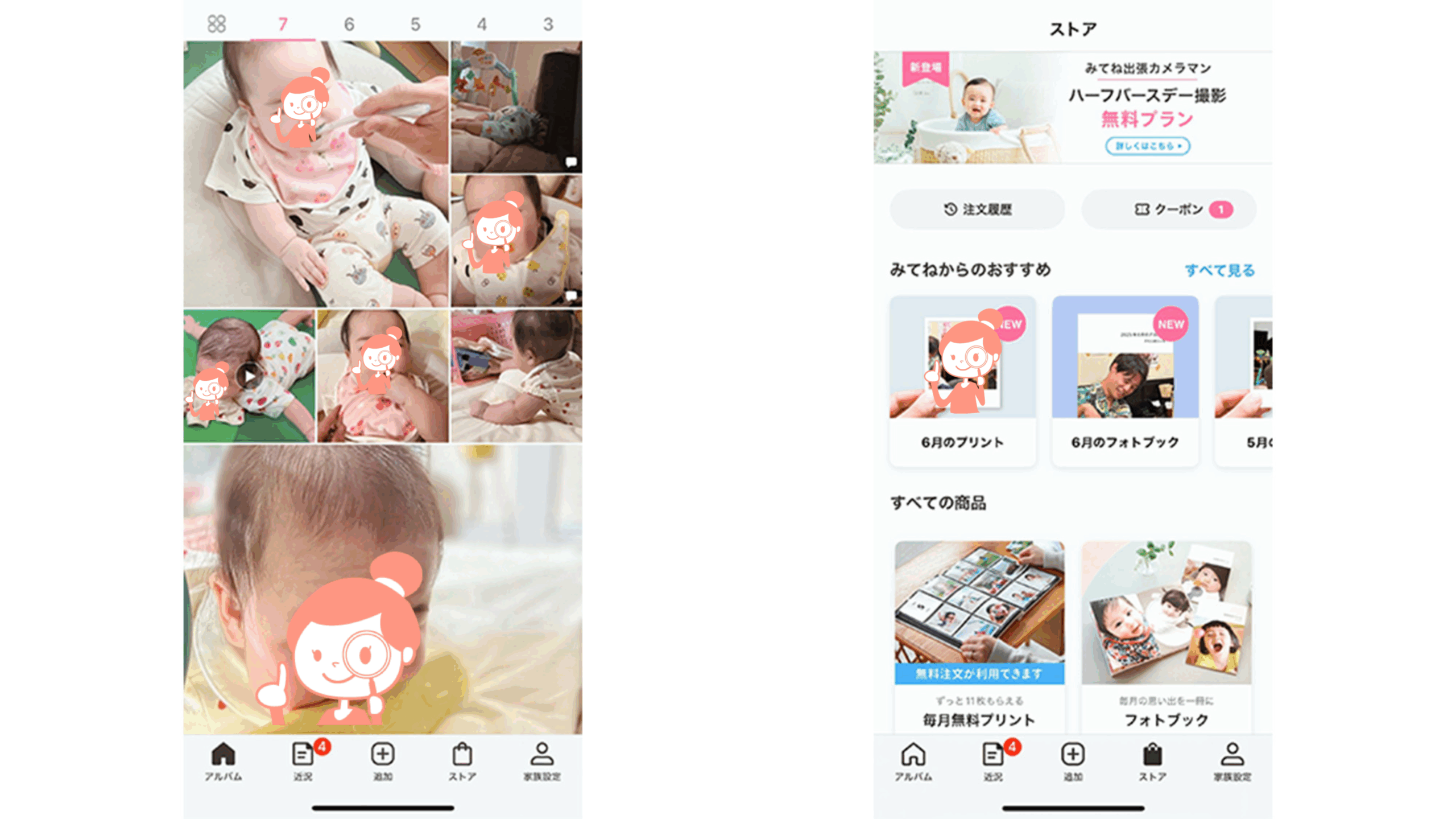 「家族で“みてね”のアプリを使っています。写真が共有されたときに通知が来るので、仕事の休憩中に癒されつつ、頑張ろうかなって。遠方の祖父母や父母からもらった服を着せて近況報告をしたり、子どもの成長を写真で伝えられるので、いいですね」